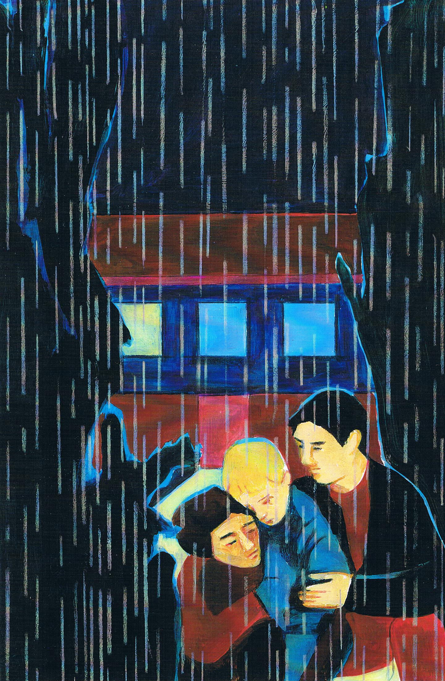 Au-dessus de leurs têtes, les nuages s’amoncellent, craquent, s’entrechoquent et se déchirent. Des milliers de flèches d’eau en jaillissent.