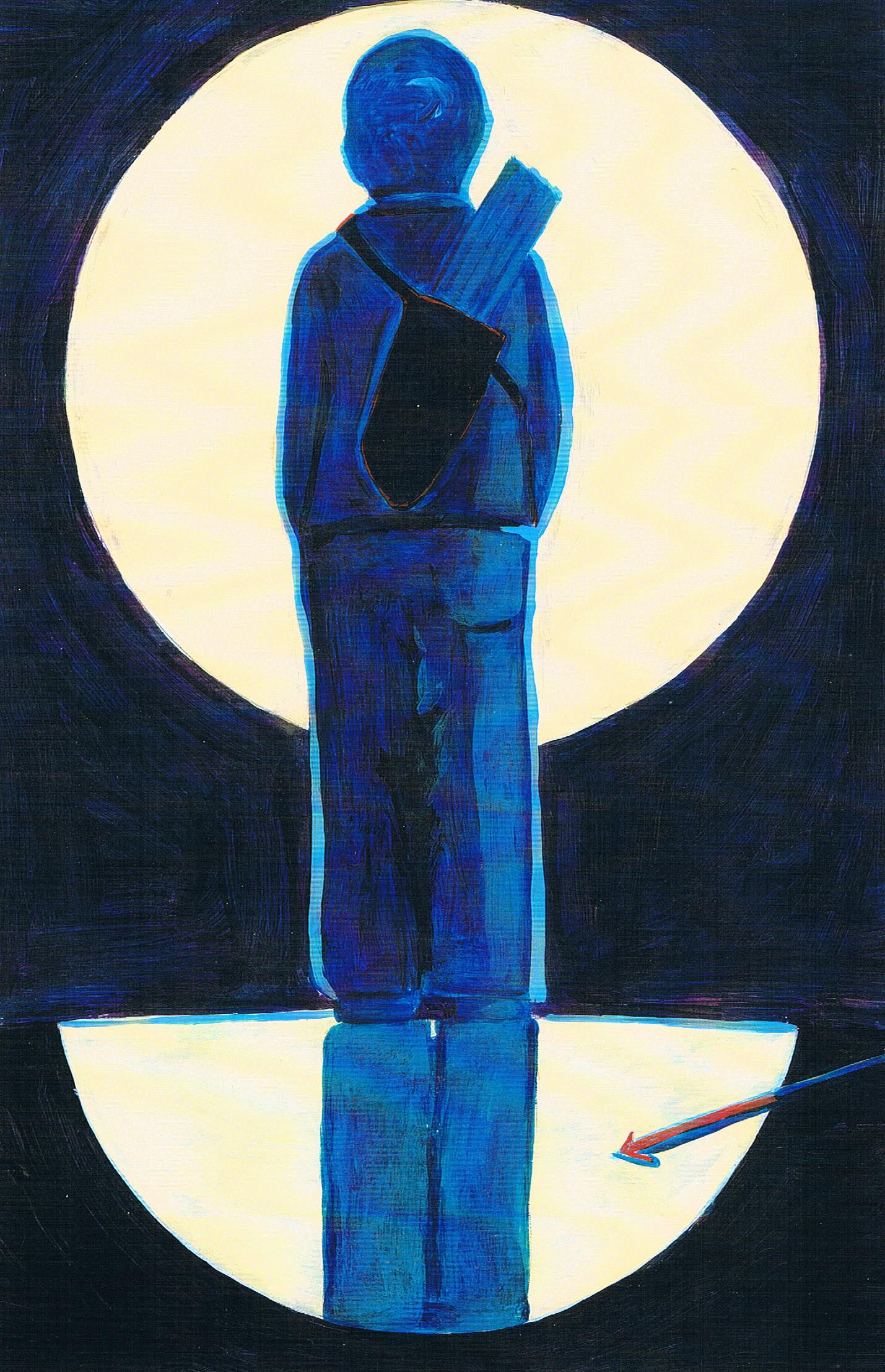 Pierre ouvre la fenêtre et regarde longuement la lune. Puis, il saisit une flèche et tend l’arc.