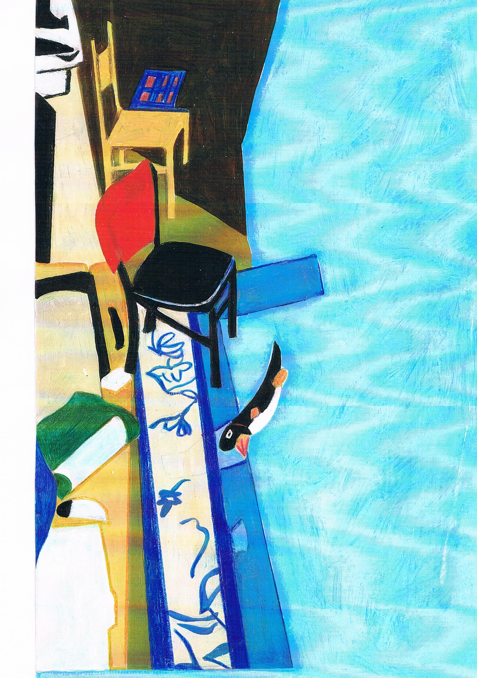 Le dimanche matin, Pierre se lève avant tout le monde et dévale les escaliers quatre à quatre. Il se rue vers la cuisine, ouvre la porte et se retrouve dans le jardin. Tout penaud !