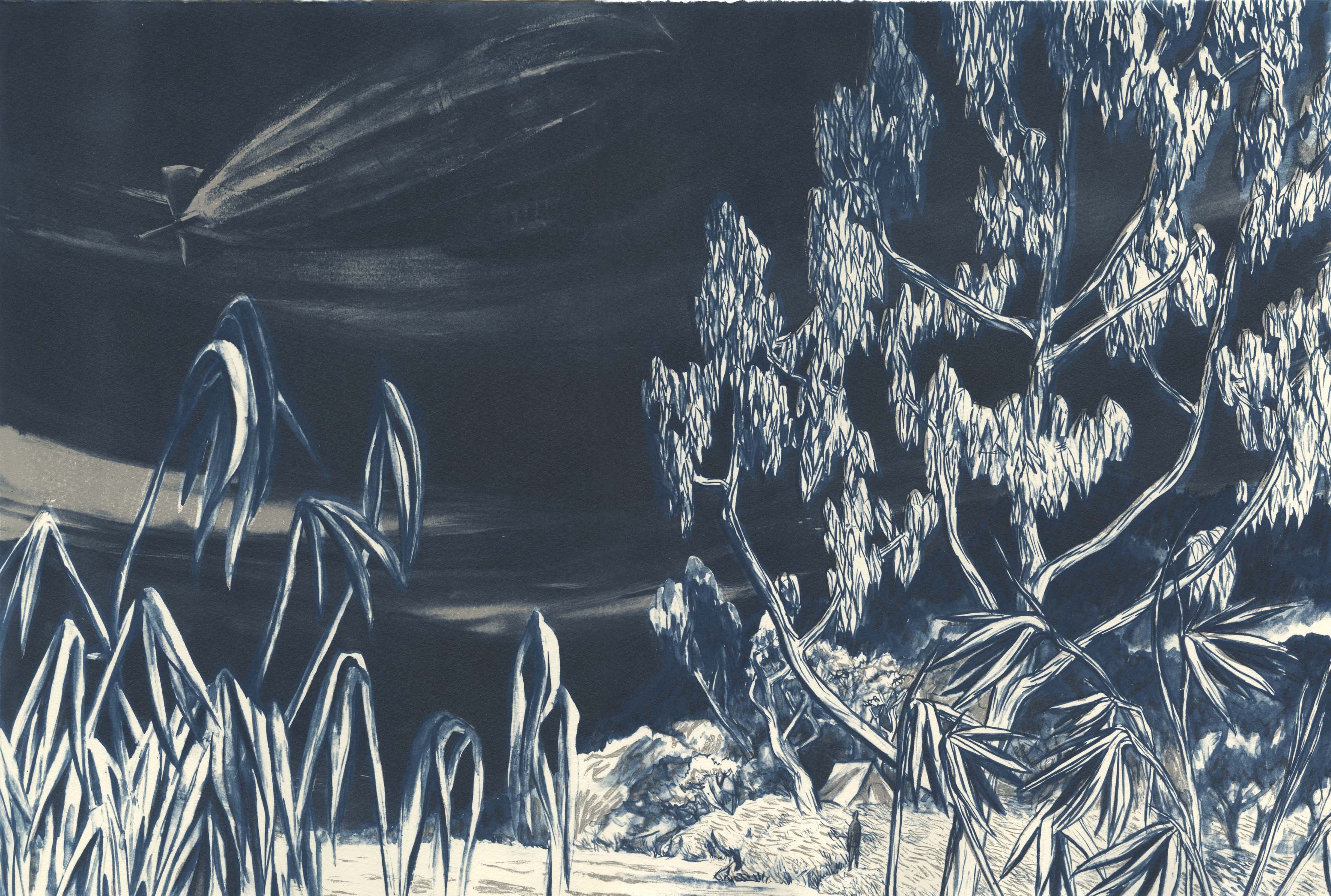 Elle vit un oiseau étrange flotter sans bruit au-dessus de sa tête. Elle regarda le sol, n’y distingua pas l’ombre projetée du ptérodactyle muet. Elle se hissa sur la pointe des pieds mais il n’était déjà plus là.